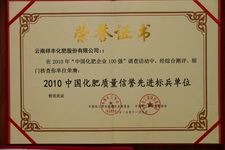 2010中國(guó)化肥質(zhì)量信譽(yù)先進(jìn)標(biāo)兵單位