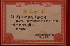 昆明地區(qū)工業(yè)企業(yè)100強(qiáng)名列第86名