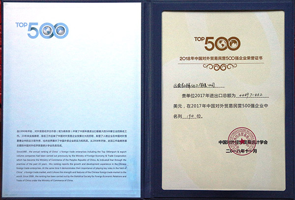 2017中國對外貿(mào)易民營500強(qiáng)企業(yè)(第194名)