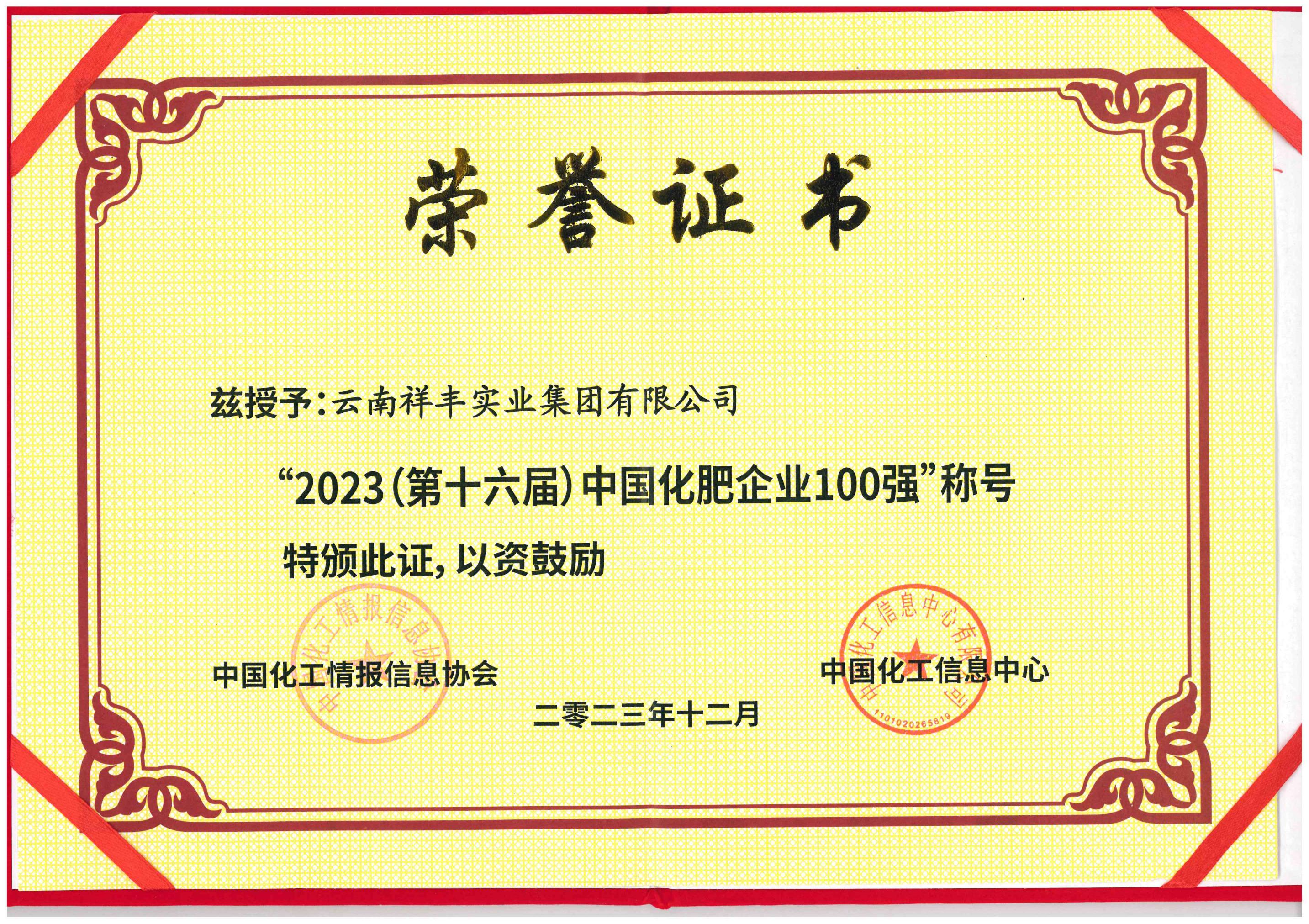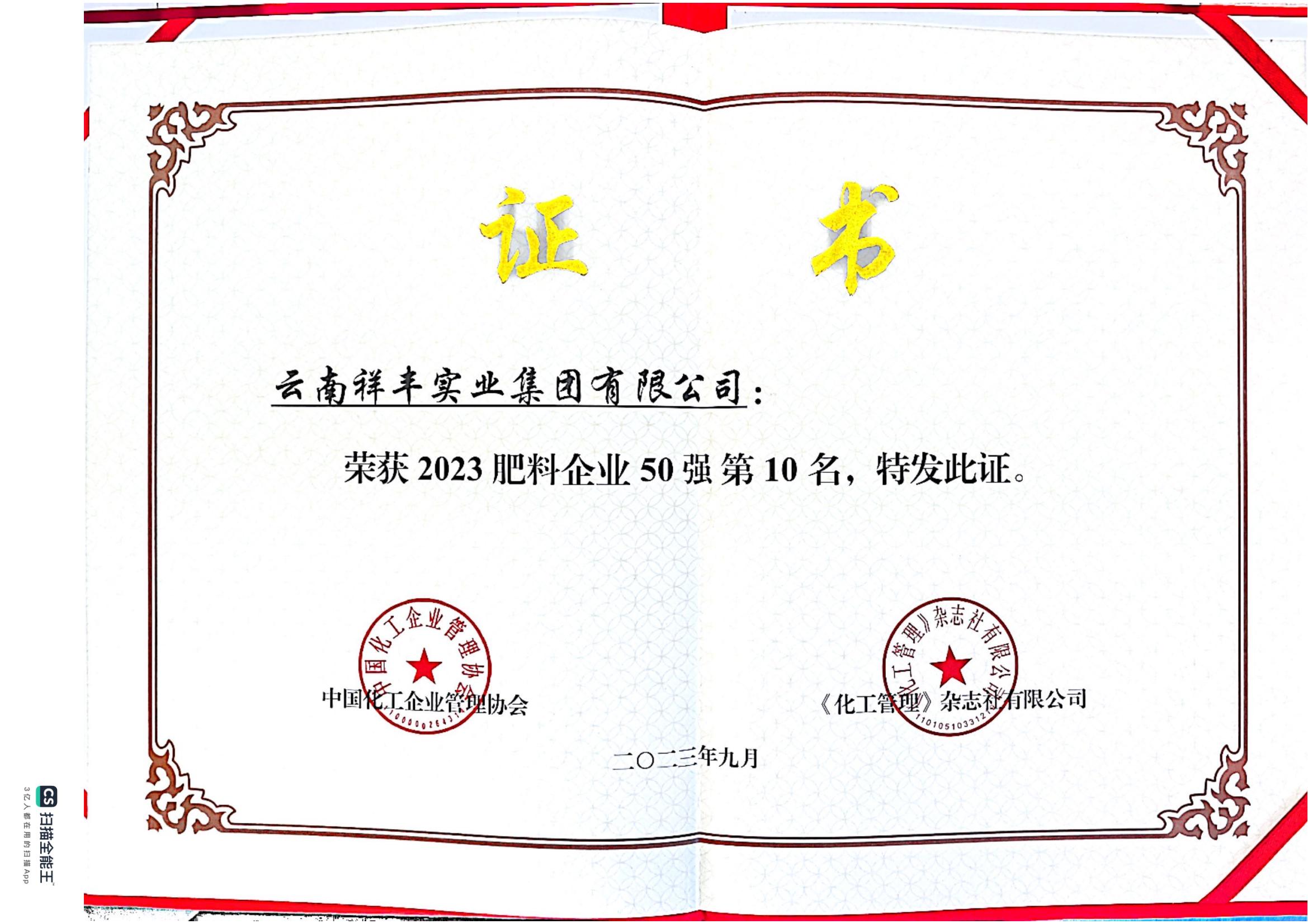 2018年12月16日,2018(第十一屆)中國(guó)化肥企業(yè)100強(qiáng)發(fā)布會(huì)暨國(guó)家化肥品牌計(jì)劃高峰論壇在山東青島舉行。云南祥豐集團(tuán)位列中國(guó)磷復(fù)肥企業(yè)100強(qiáng)第十名,中國(guó)化肥企業(yè)100強(qiáng)第十九名