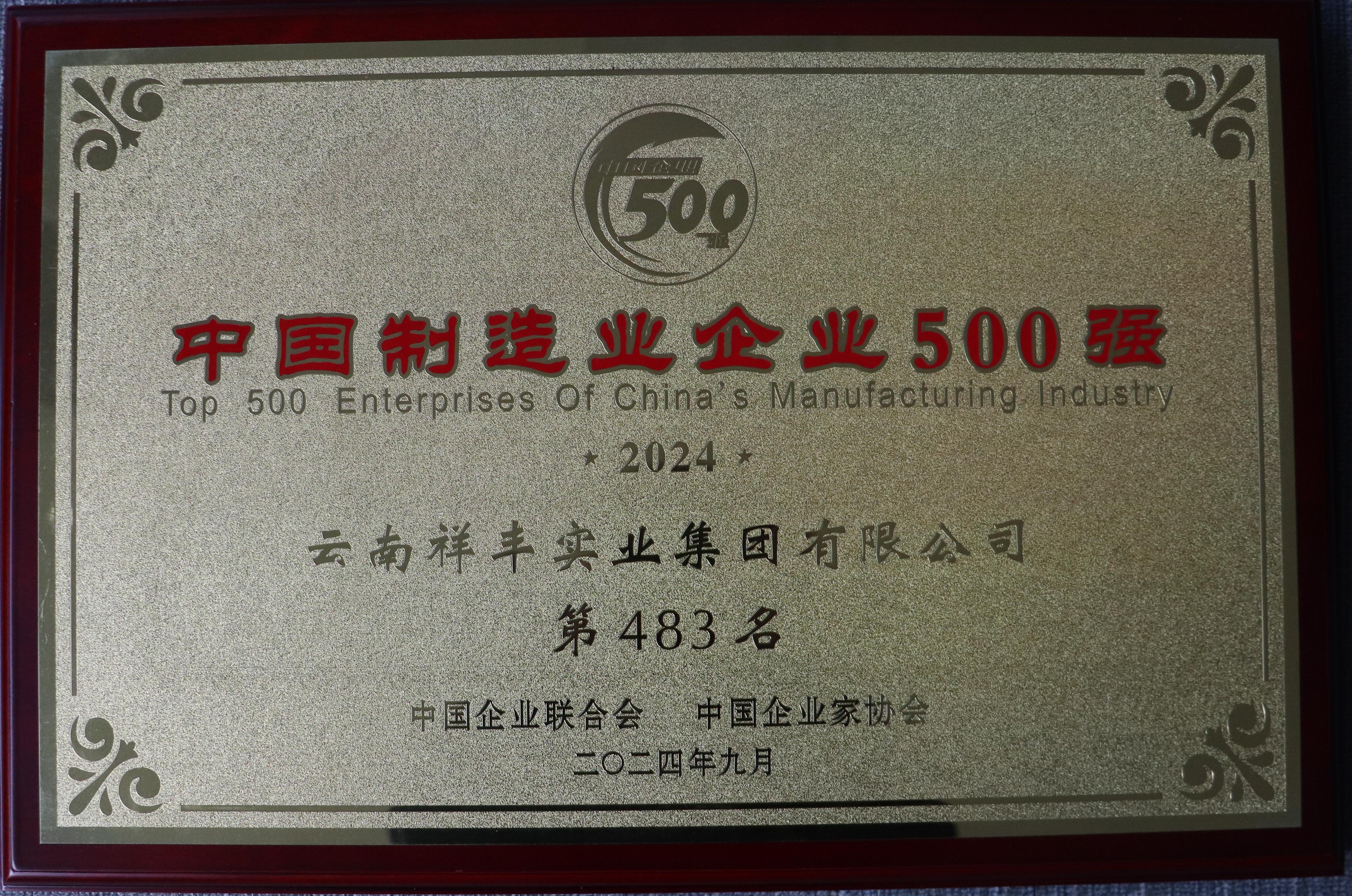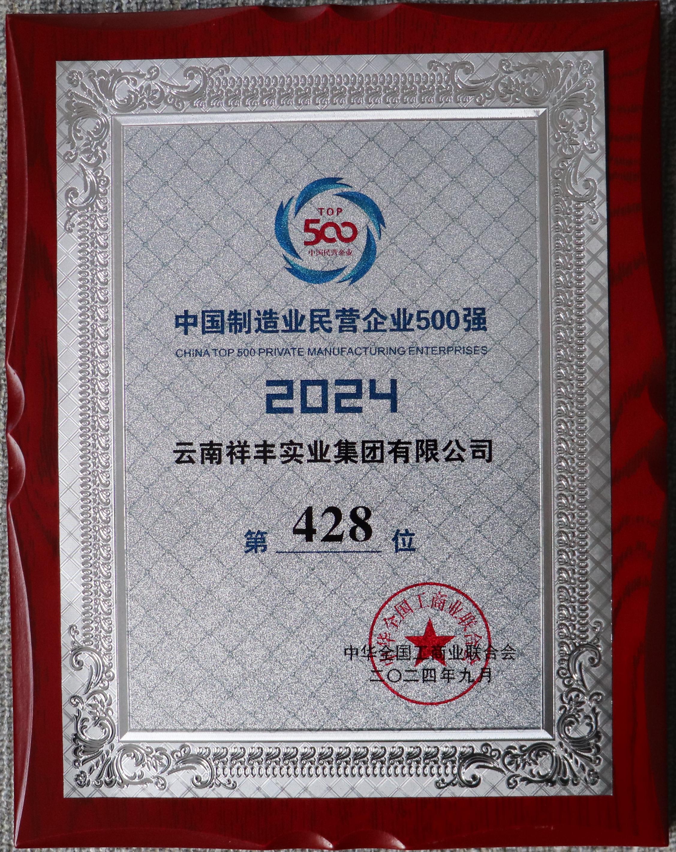 2024中國制造業(yè)民營企業(yè)500強(qiáng)第428位