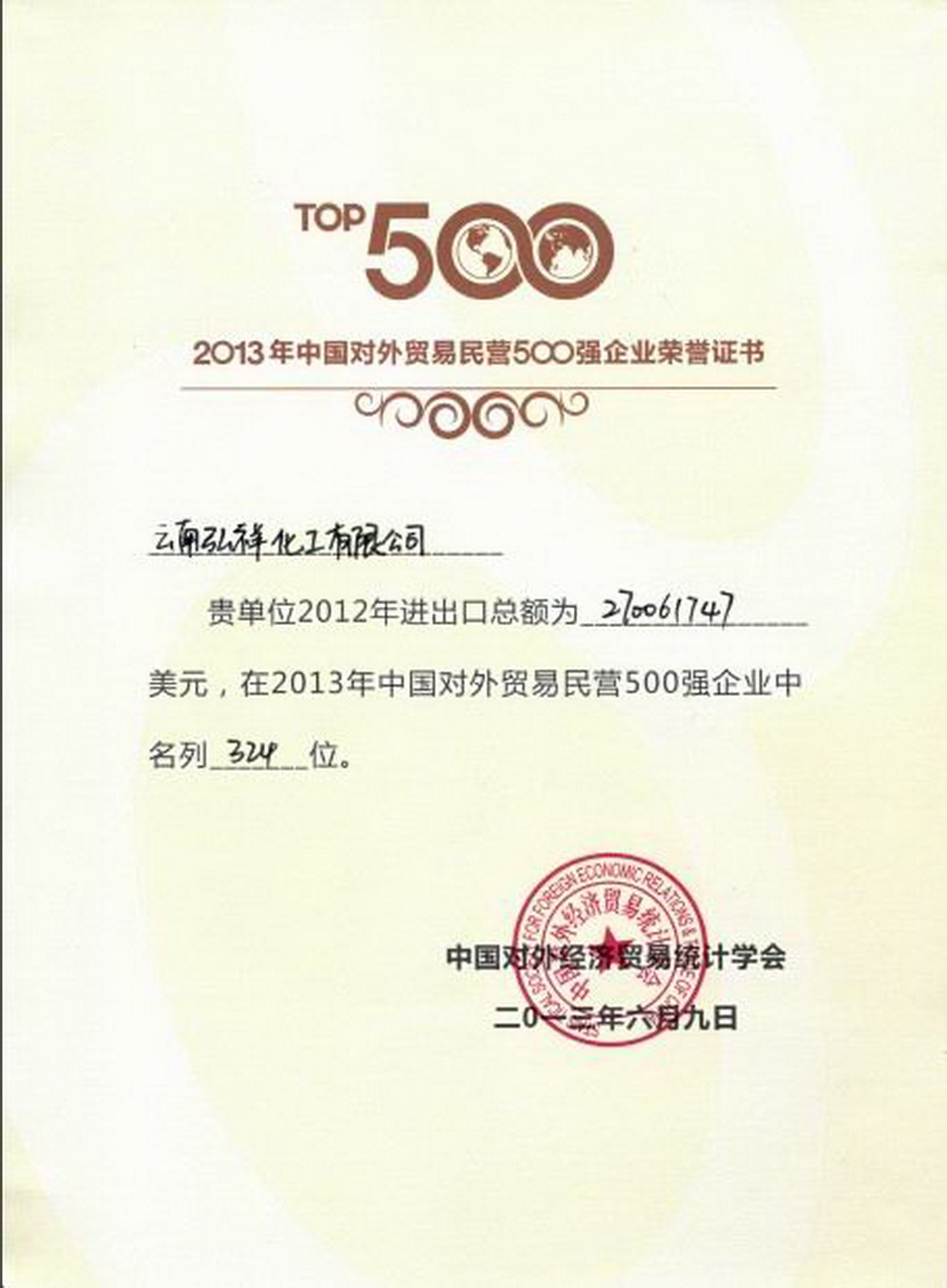 2013中國對外貿(mào)易民營500強(qiáng)企業(yè)